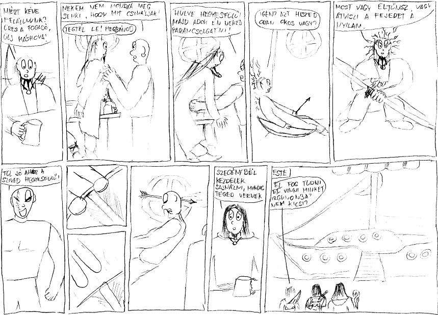 Képregény Hát igen. Ez itt elég kezdetleges, nem is túl szép, de ez az alapja a könyvnek. Imi rajzolta. A történet egy kicsit megváltozott azóta, és a könyv egy kicsit részletesebb, úgyhogy ahhoz, hogy valaki megértse az Örökséget el kell olvasni a könyvet. És itt vége van a képregénynek.Itt kezdtük el írni a könyvet. |